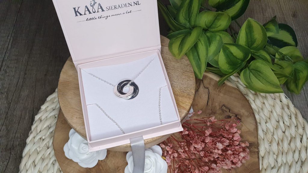 De “ketting met naam Intertwined” is zoals je op de foto’s kunt zien een hele mooie ketting. De betekenis voor mij achter deze ketting? De drie ringen zijn met elkaar verbonden, net als ons gezin dat is. Op iedere ring staat een naam van één van ons gegraveerd. Mijn persoonlijke sieraad staat in dit geval dus symbool voor ons gezin. Hoe mooi is dat om altijd bij je te dragen?