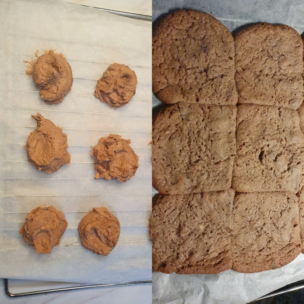 Ondanks dat ze qua “uiterlijk” dus echt heel erg mislukt zijn, zijn ze qua smaak heel erg lekker! Volgende keer moet ik de hoopjes deeg op het bakpapier kleiner maken en wat meer verspreiden en dan denk ik dat het al veel beter wordt!