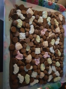 Mijn inbreng voor een DIY Sint traktatie zijn dus de chocolade brokken met schuimpjes en pepernoten. Het is echt heel makkelijk te maken, super lekker en gegarandeerd stuiterende kinderen ;).