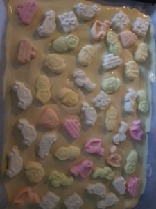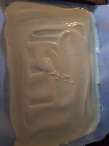 Druk nu zo snel mogelijk de schuimpjes erin, voordat de chocolade weer hard word.